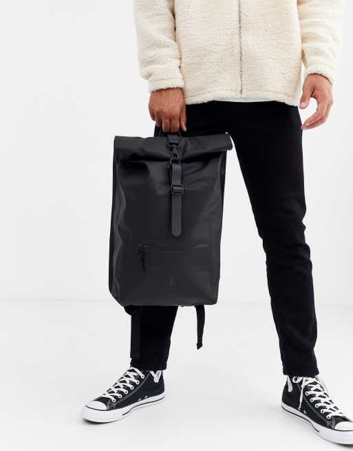 The rectangular body has two symmetrical side cargo pockets with signature carabiner buckle closures to match the front.the wa Constructed in rains' waterproof pu, this bag has additional buttons at the top closure to better keep the bag's contents dry. Rolltop rucksack is rains' take on a cycling backpack. Rucksack large is a more spacious version of the original rains rucksack design. Get lost in our universe of rains waterproof backpacks made with attention to even the smallest details.